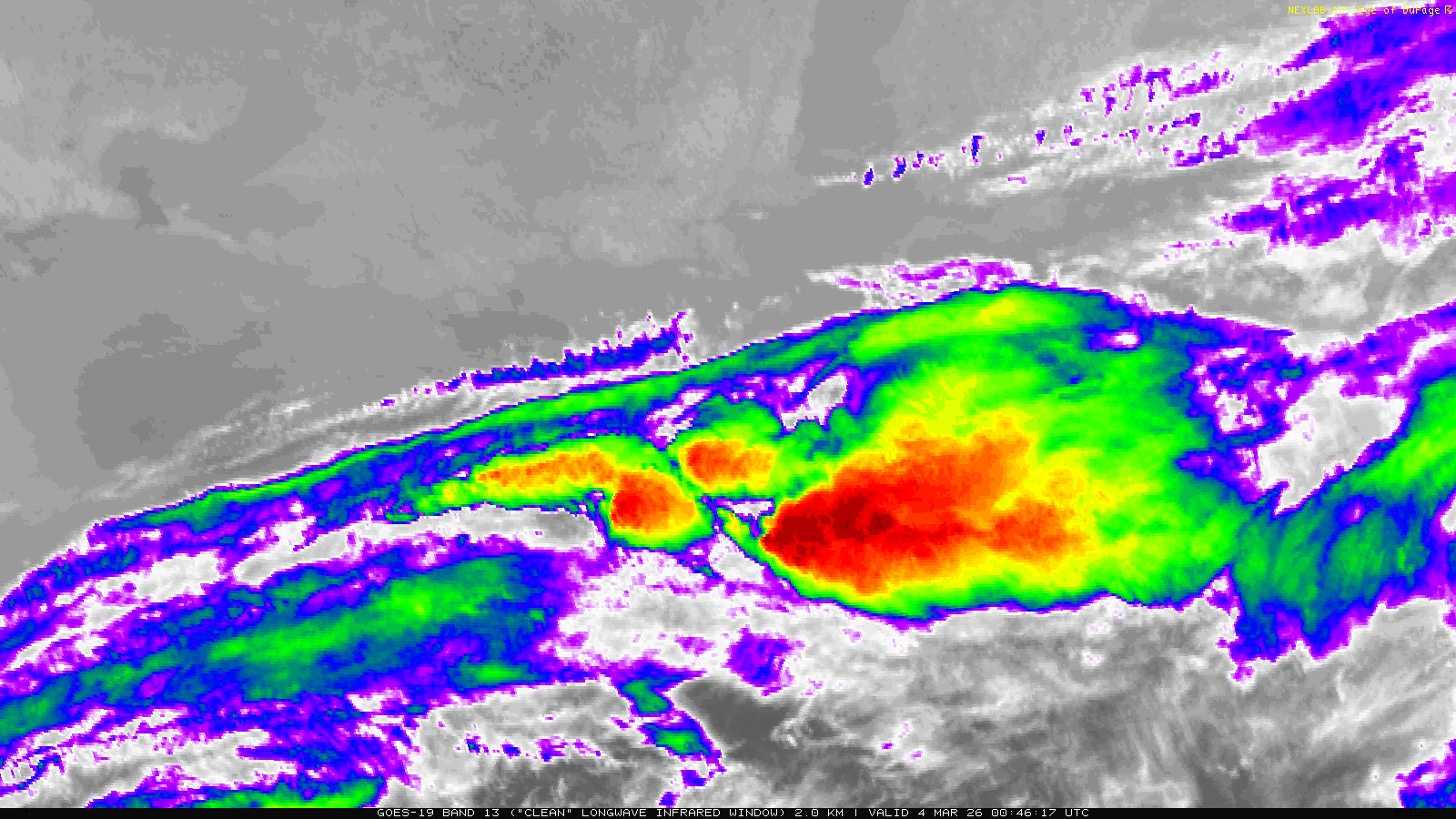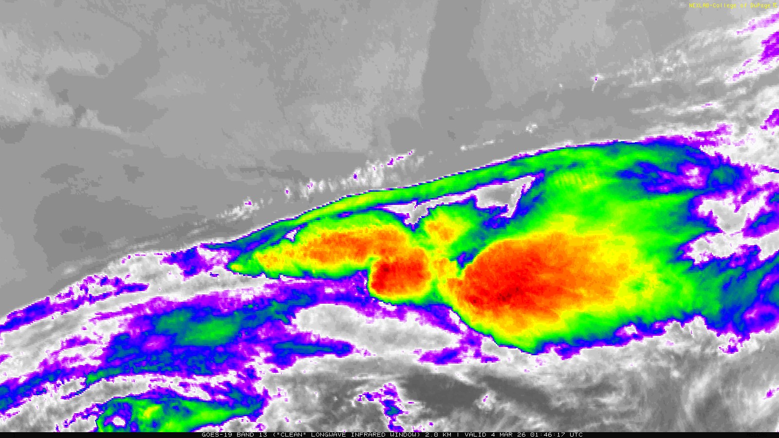 The imagery on this page is generated with Unidata's McIDAS-X software package, on server hardware obtained through Unidata's 2017 Equipment Award. The Equipment Award is sponsored by the National Science Foundation. It is because of these tools and resources that we are able to bring this data to you. Unidata empowers educational institutions like ours by providing software, support and grants to further education and research of our planet and atmosphere. To learn more about Unidata, visit them here.