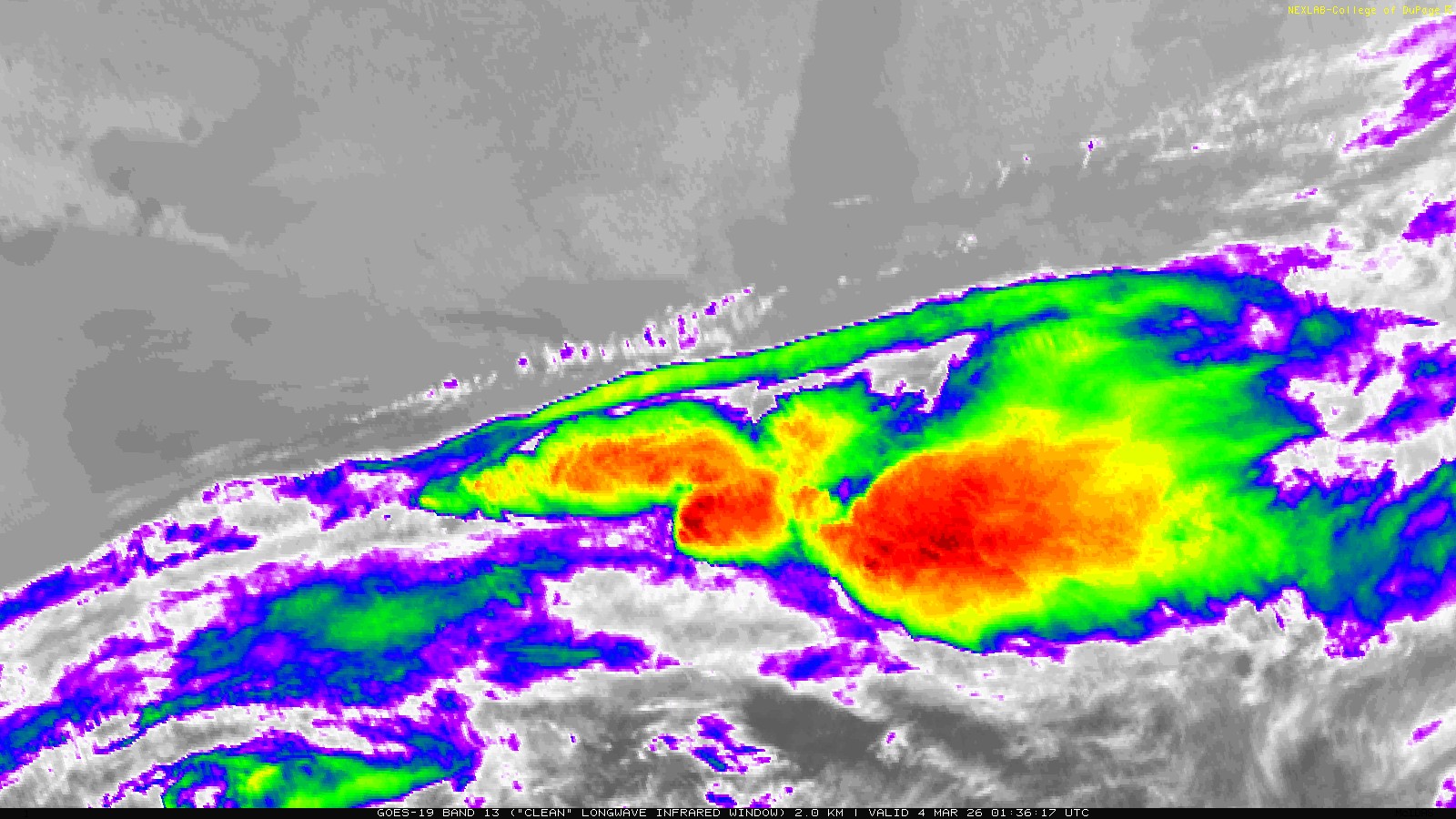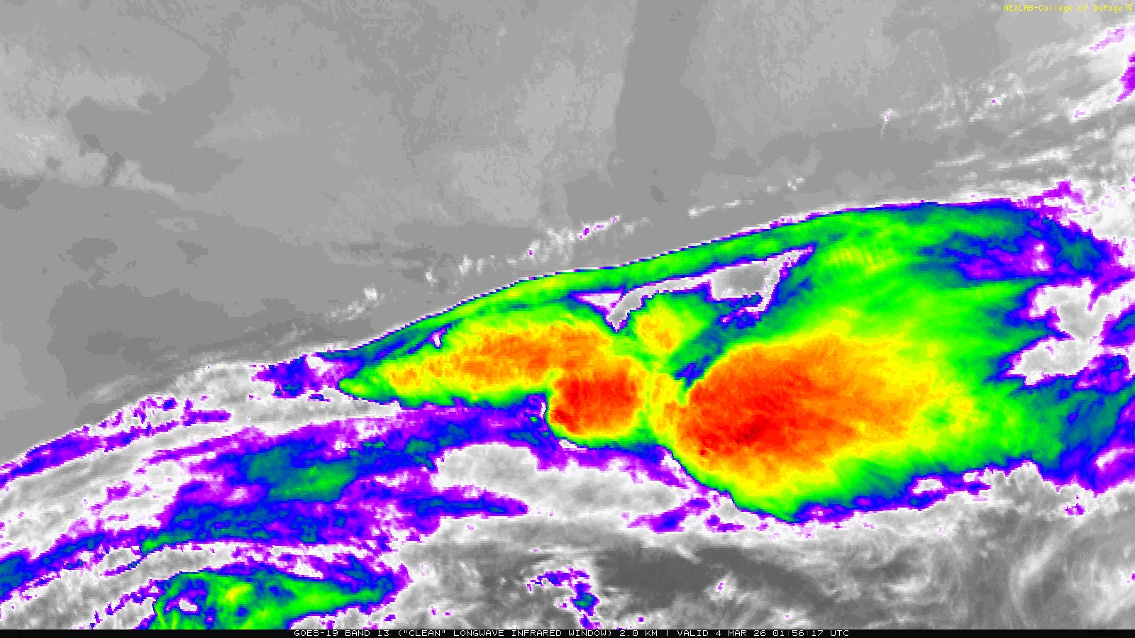 Both GOES-East and GOES-West are capable of having up to two mesoscale scanning regions. The satellite’s ABI will scan each of these regions once per minute, or it can scan one region every 30 seconds. This results in satellite imagery that can update faster than most weather radars! Beyond that, there is no difference in the products themselves between mesoscale imagery and CONUS imagery.